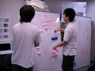 今日は展示コンセプトのブレインストーミングを行いました。様々な意見が飛び交う中、かうためのデザインということで、店舗らしさを展示で表現することに決定。